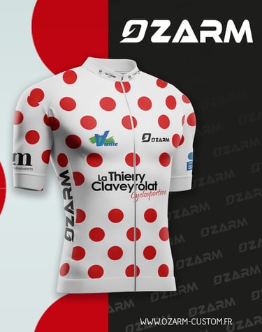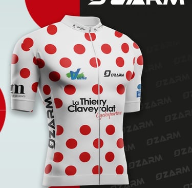 Pour cette édition, on a voulu rendre hommage à Thierry Claveyrolat avec un maillot inspiré du célèbre maillot à pois du Tour de France. Il a été imaginé et réalisé par Ozarm, qu’on remercie vivement pour cette belle collaboration. On espère qu’il vous plaira et qu’il fera vivre encore la mémoire de Thierry à travers lui.